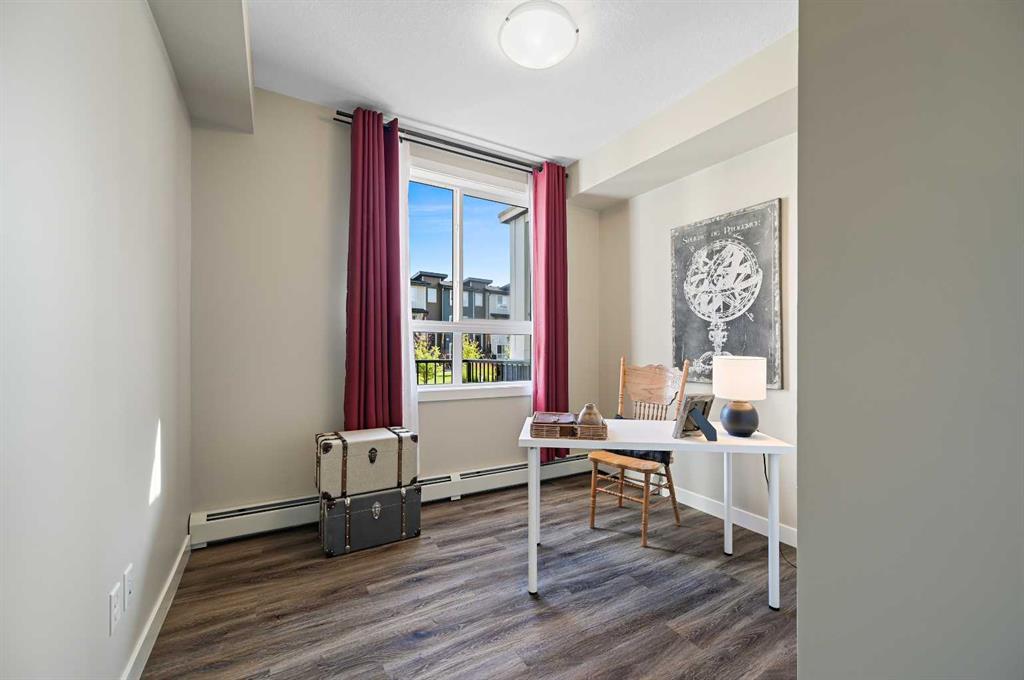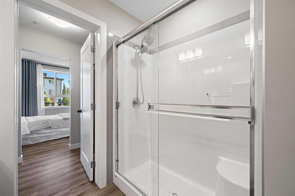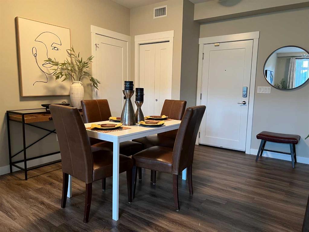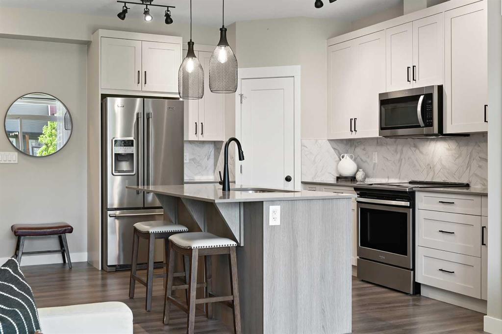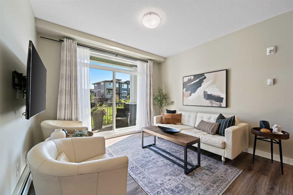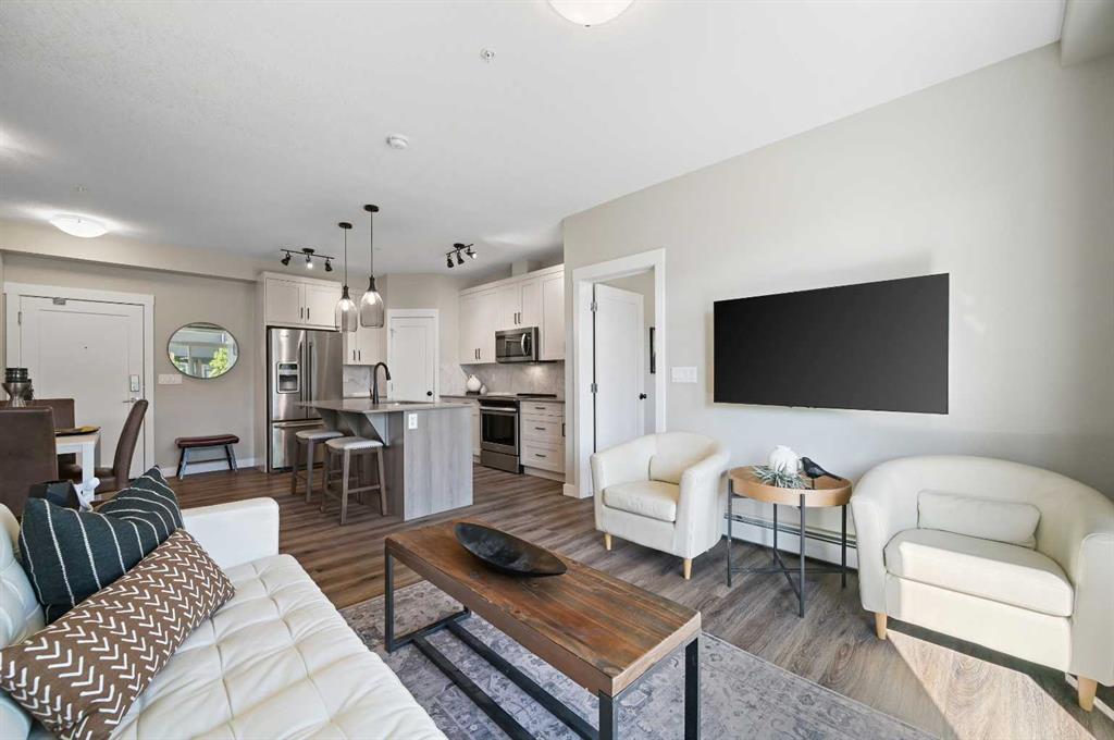 IN ABSOLUTELY MINT CONDITION! 823 sq ft 2 bedroom | 2 bath apartment condo by Cardel Lifestyles, overlooking a quiet tastefully landscaped COURTYARD with a raised elevation for just a little more privacy! MUST-HAVES include easy-care luxury vinyl plank flooring throughout the entire condo. You'll love the 9 ft ceilings, super-open concept and cozy infloor heat. Bright kitchen with large island complete with quartz counter-tops, upgraded stainless steel appliances, pendant lighting and a spacious corner pantry. Decorated in designer neutrals, your new place will compliment any furniture style. Supersized sliding patio door opens to a 16 foot balcony, complete with bbq gas line and a personal gate that opens out into the court-yard. Got a dog? Want a dog? This is the place for you! Easy access from your own balcony opens to dog-friendly pathways and special dog areas in this complex allow you to enjoy after-work walks with your best friend. Generous master bedroom easily fits a king sized bed and more. Walk-in closet and a 4 piece ensuite with his and her sinks along with an oversized glass shower. All bathrooms come with quartz countertops. A second full bathroom services the 2nd bedroom. Large windows in this unit flood allow for lots of light. In-suite laundry comes with a stacking washer and dryer and storage. Extra storage available in the storage locker at the head of your titled underground heated parking spot. Very secure buildling and well-managed condo board. Abundant visitor parking in this friendly modern community. Condo fees only $382/mo, and include heat, water, sewer, and more. Pick your possession date!