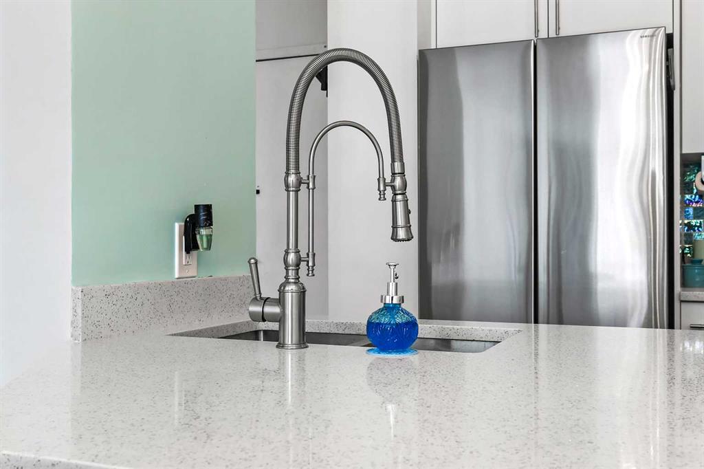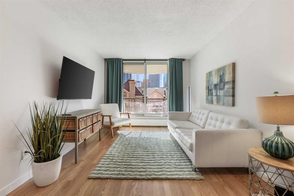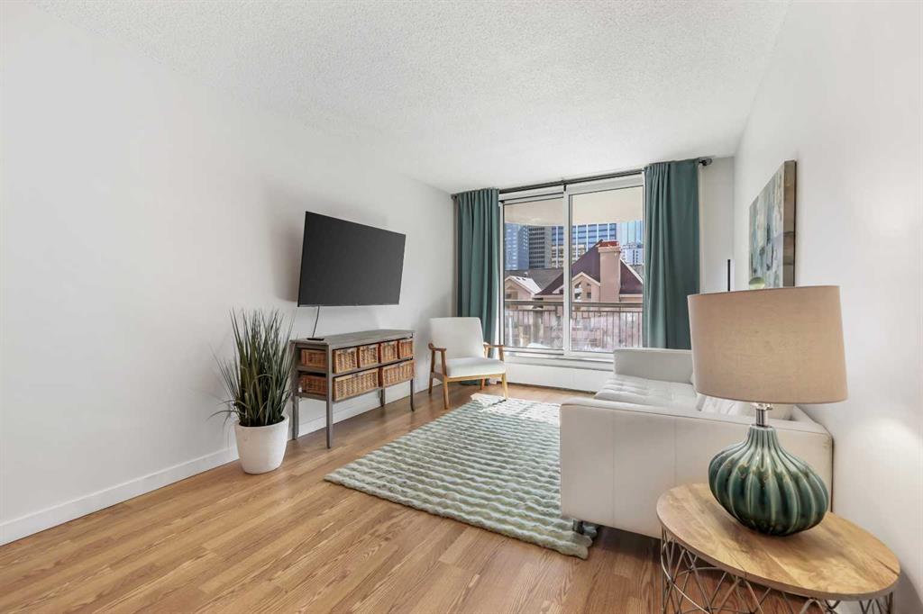 Discover an incredible opportunity to own a BEAUTIFULLY RENOVATED condo in the PRESTIGIOUS EAU CLAIRE district at an affordable price! Step inside to find a bright open-concept layout anchored in this 1 Bed/1 Bath condo in PRINCES CROSSING with sunny SOUTH EXPOSURE and lovely views from the 6TH FLOOR in this CONCRETE BUILDING. You'll fall in love with the designer KITCHEN showcasing ceiling- height CUSTOM CABINETRY featuring UPGRADED STAINLESS STEEL APPLIANCES including a sleek INDUCTION COOKTOP WITH CONVECTION OVEN, glass mosaic backsplash, QUARTZ COUNTERTOPS, and expanded eat-at island that seats four. Additional CUSTOM CABINETRY added to island for more storage. The spacious living area is bathed in natural light through large patio doors that open to your circular 180 degree balcony where you can take in the south URBAN SKYLINE AND WEST VIEWS. Renovated full bath with NEW VANITY, QUARTZ COUNTER-TOP, mirrored storage cabinet and DEEP SOAKER TUB. Updated baseboards, lighting and hardware throughout. Smart details like IN-SUITE LAUNDRY and a SPACIOUS STORAGE ROOM (big enough for a bike and more) make everyday living easy and organized. Pets allowed with Board approval. Princes Crossing offers a variety of lifestyle amenities including a well-equipped fitness centre with steamroom, on-site convenience store, meeting room, concierge service and a heated underground parking stall. All of this just steps from Calgary's river pathways, fine dining and trendy cafes yet nestled on a quiet, tree-lined street in one of the city's most exclusive enclaves. Experience the best of downtown living - elegant, effortless and affordable!